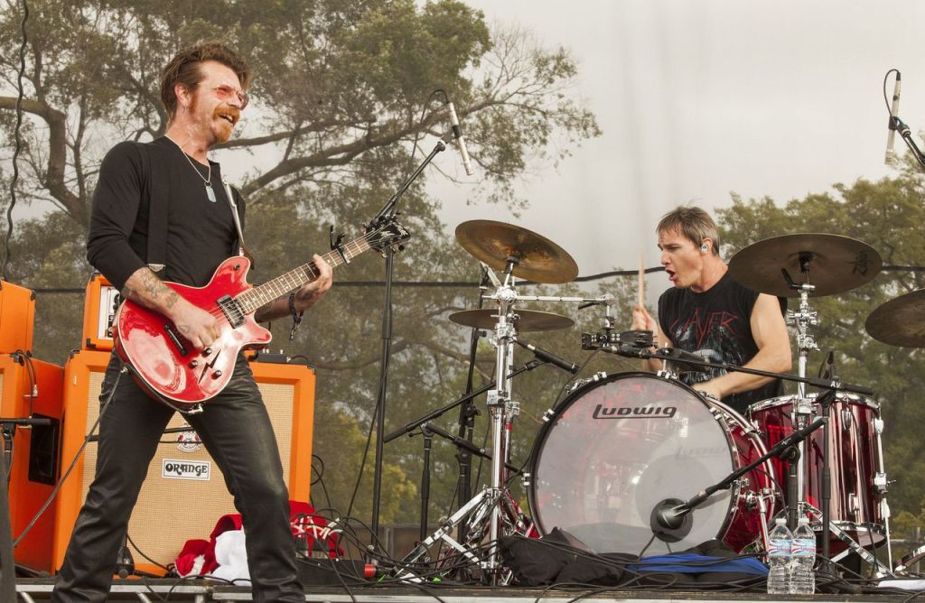 Jesse Hughes, left, and Jeff Friedl with Eagles of Death Metal perform at Riot Fest & Carnival in Douglas Park in Chicago.