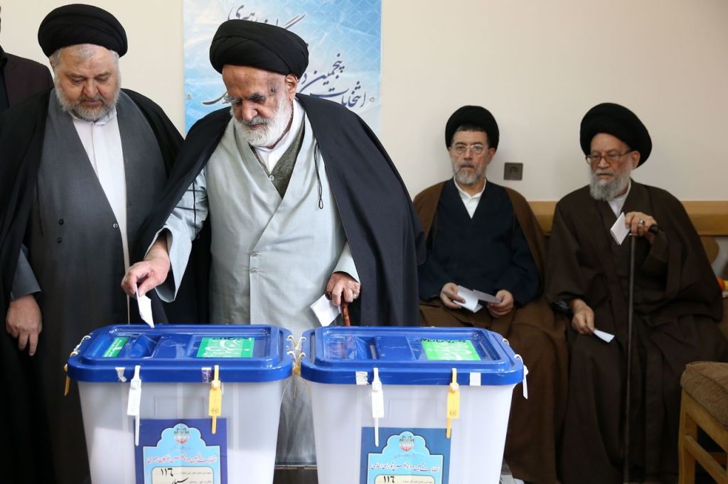 Clergymen cast their ballots in Qom on Friday.