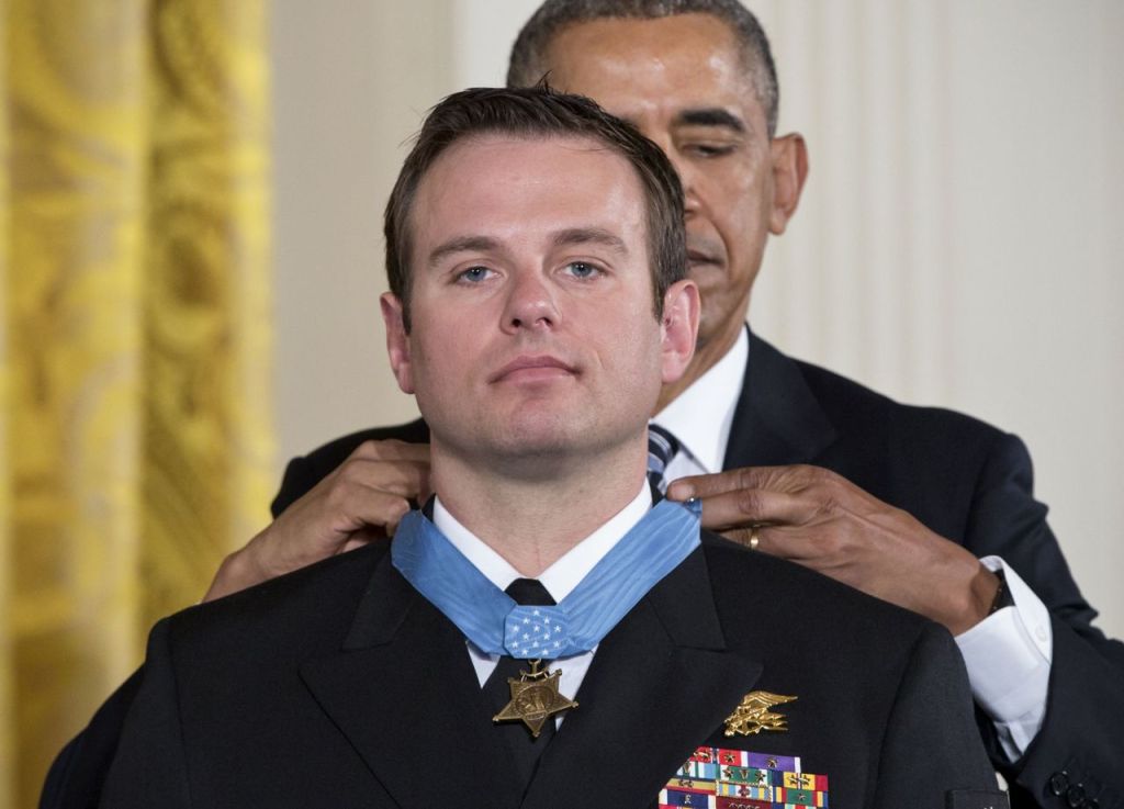Obama recounted during the ceremony how the SEALs team rushed the building where the doctor has been taken. Byers ripped down a layer of blankets, exposing himself to enemy fire. A teammate pushed in and was shot. Byers moved in next and fired at an enemy guard.