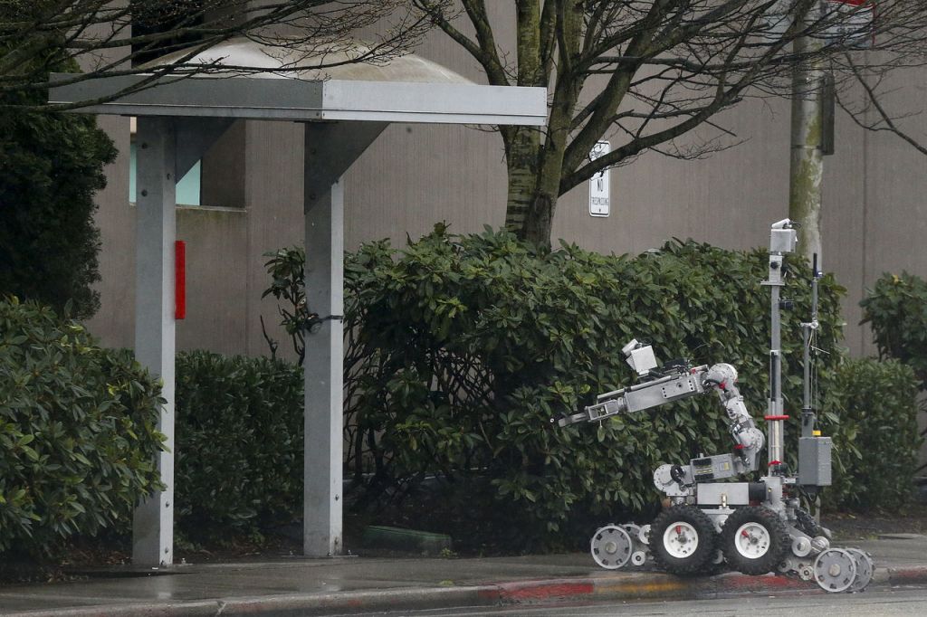 A Washington State Patrol bomb dog was used to search the area around the bus stop. No injuries were reported.