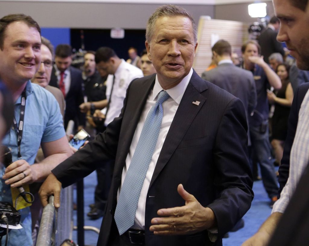 Republican presidential candidate John Kasich talks to reporters after the presidential debate Thursday in Coral Gables, Florida.