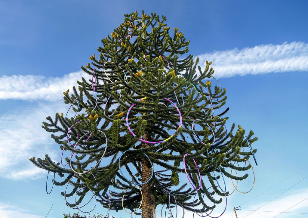Sometimes, the hoops take a spin. “Those big winds we had, I had 24 hula hoops flying all over the place,” she said.