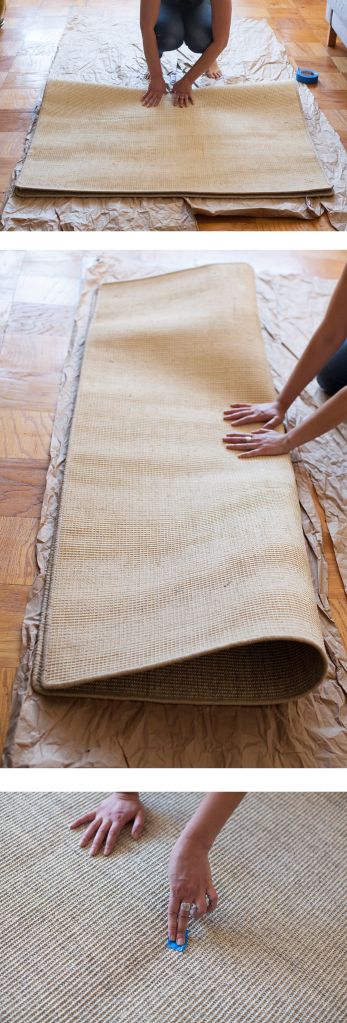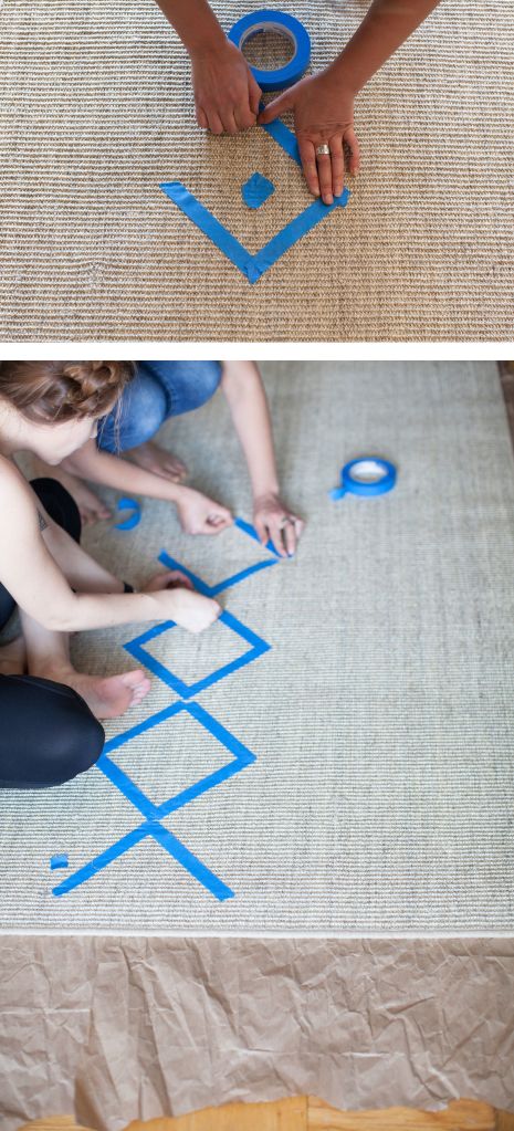 Treating a neutral, natural-fiber rug as a blank canvas will yield completely customizable results and save you bundles. (My 4-by-6-foot sisal ended up costing under $150, all materials included.) Of course there’s no way your guests will confuse a painted rug with a hand-knotted original, but it’s more fun than having a bare floor or a rug in a solid color.
