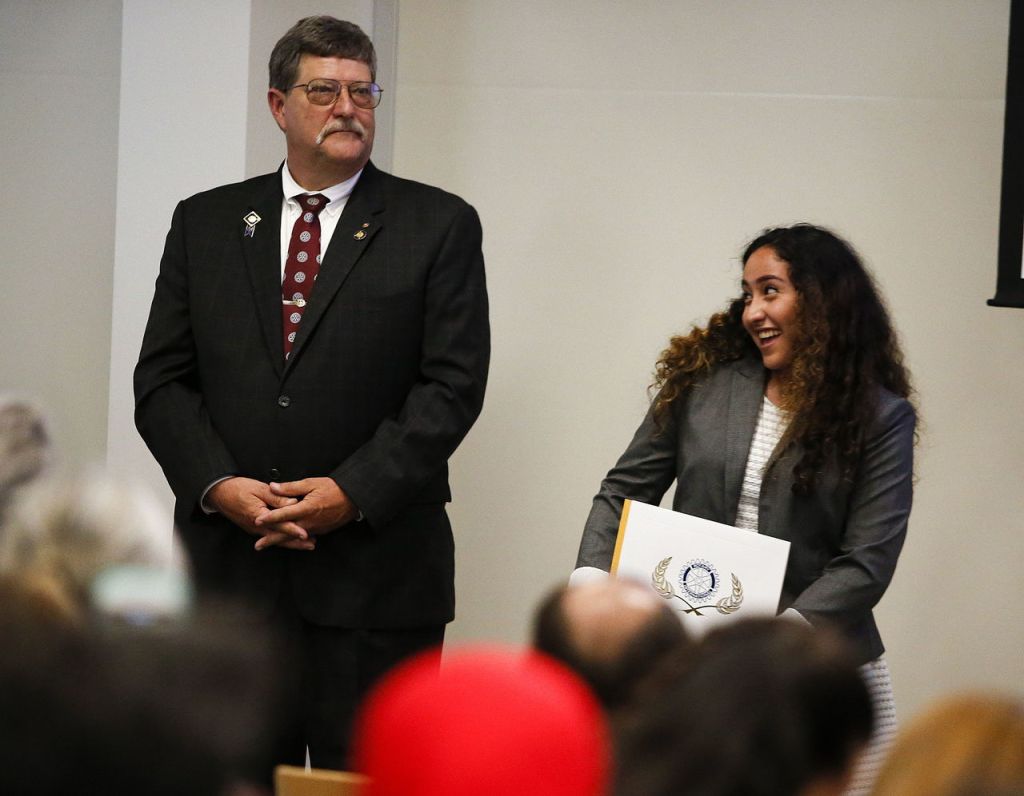 At a Marysville Rotary Club ceremony, Marysville Pilchuck senior Alisha Purdom watched her parents cry with pride when she received a $4,000 scholarship.