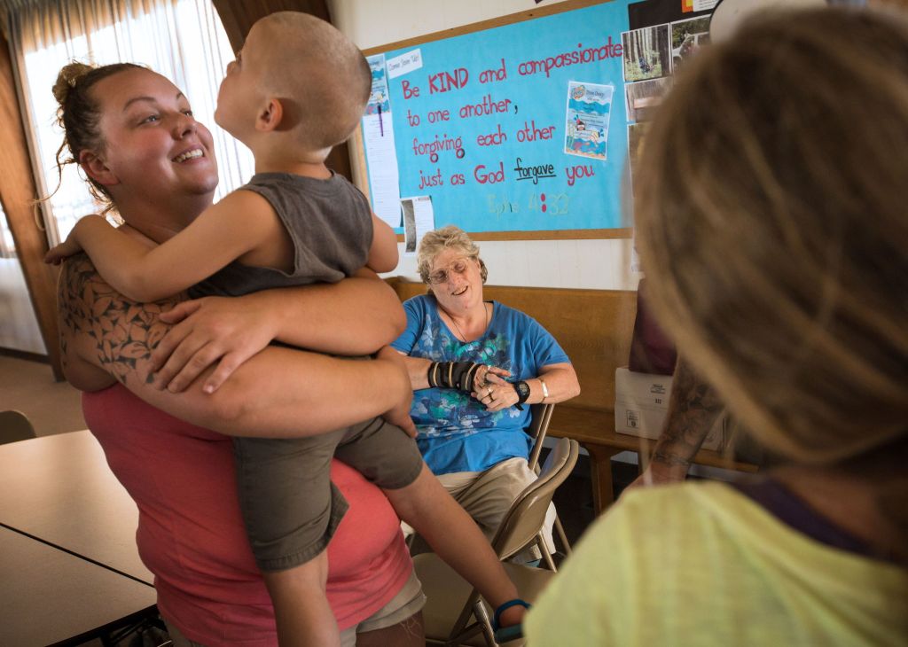 “Usually the first Thursday of the month is a little low because people still have the food stamps, but there’s a lot by the end of the month,” said Maria Gedstad, who has been volunteering with the Gathering Place since it started. “It’s mostly older people. Some have lost their husbands or wives and come here to visit.”