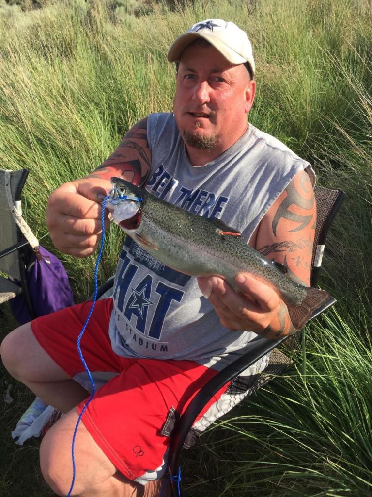 Mike Meseberg of MarDon Resort on Potholes Reservoir sent a photo of Shane Anderson, a fisherman from Belfair who nailed one of the special trout June 10 while fishing Corral Lake with pink Power Bait. Meseberg said Anderson turned the fish in to the state and won a prize.