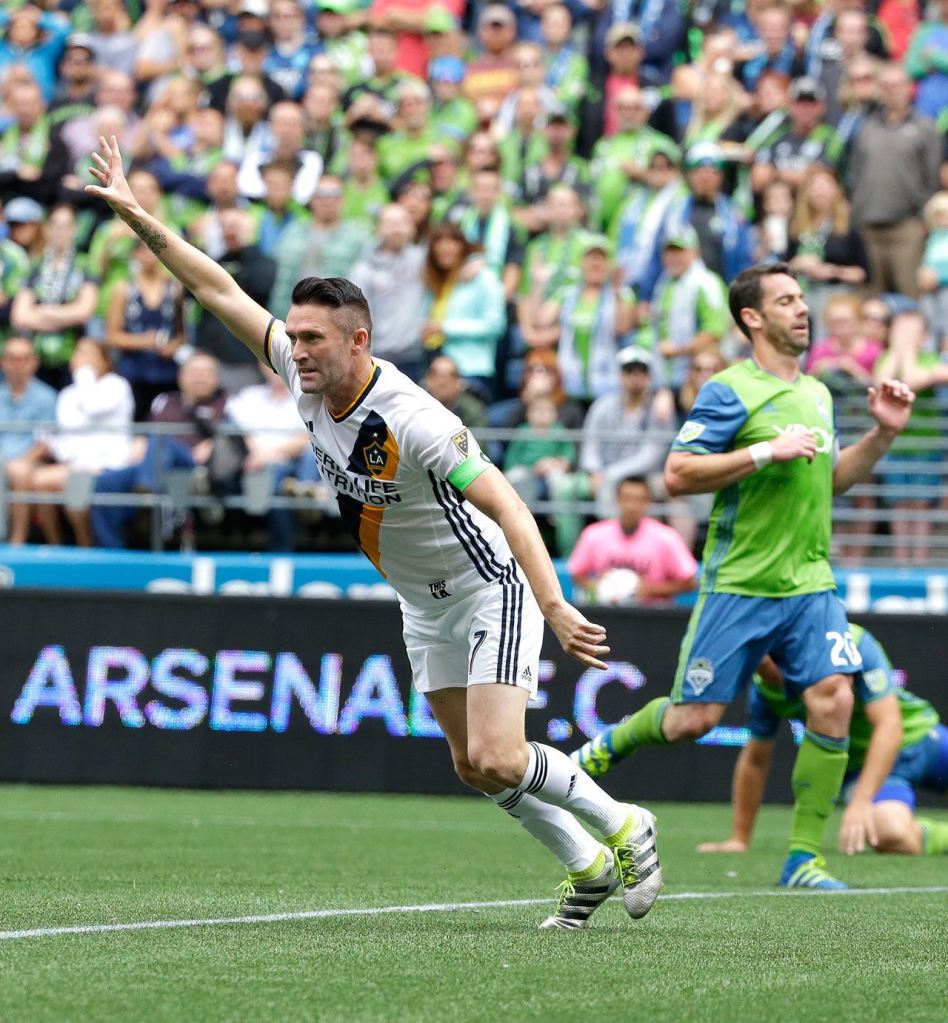 One person who doesn’t struggle with finishing chances is Keane. The Galaxy star and Ireland’s all-time leading goal-scorer had his moment in the 15th minute and he didn’t waste it. LA moved the ball quickly down the left, with Gyasi Zardes’ turn on Dave Romney’s pass leaving Seattle defender Zach Scott dead in his tracks. Zardes raced toward goal and played a centering pass toward Keane, who finished with a shot off the underside of the crossbar to make it 1-0.