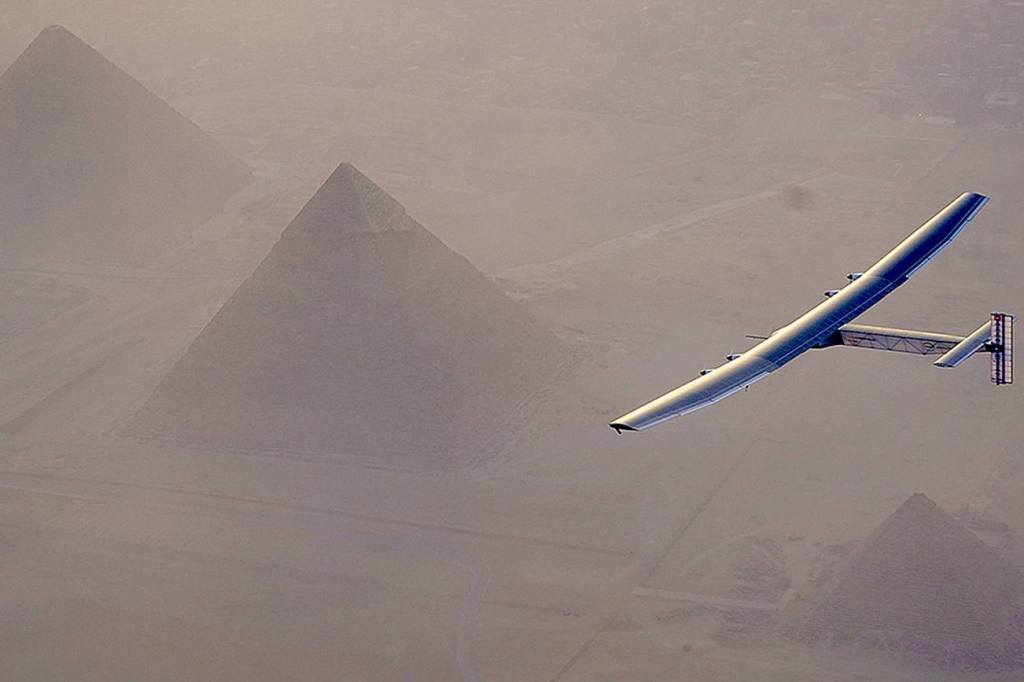 Solar Impulse flies over pyramids on globe-circling trip