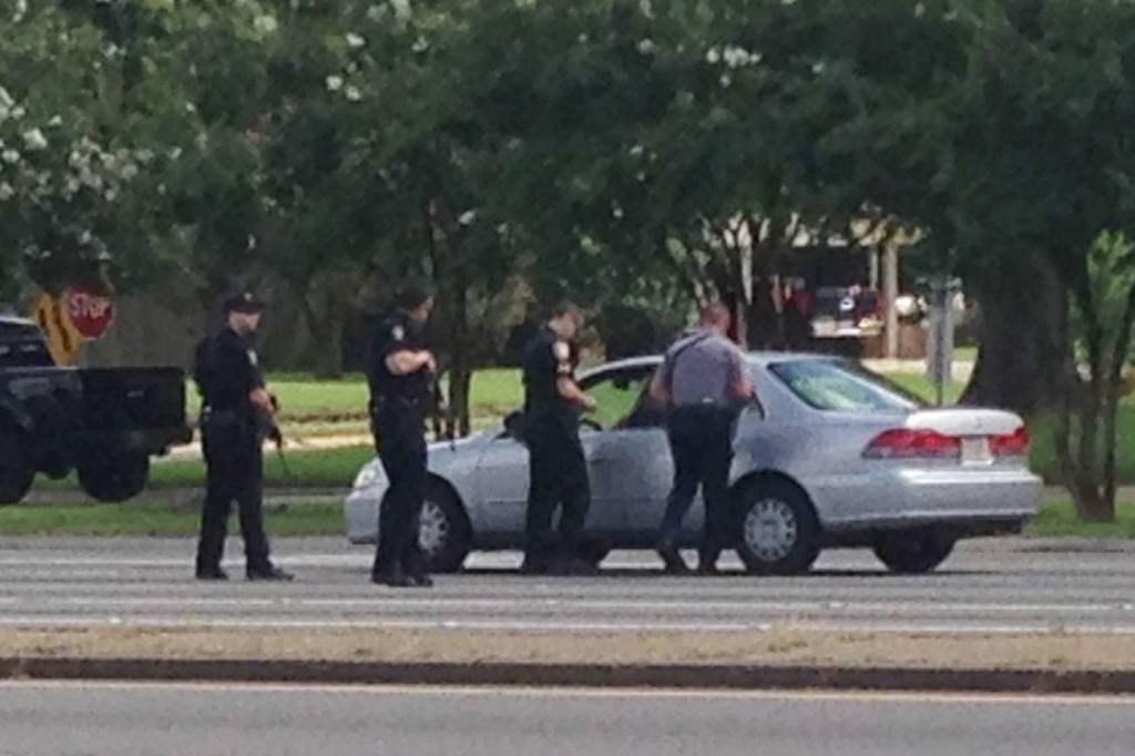 The shooting began at a gas station on Airline Highway. According to radio traffic, Baton Rouge police answered a report of a man with an assault rifle and were met by gunfire. For several long minutes, they did not know where it was coming from.