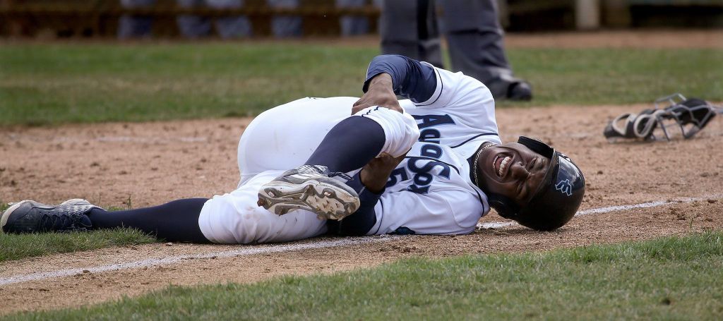 Lewis immediately clutched his right knee in obvious pain. He stayed on the ground for several minutes while he was attended to by the AquaSox training staff. Lewis was eventually helped to his feet and assisted part of the way to the dugout before going the rest of the way by himself with an obvious limp.