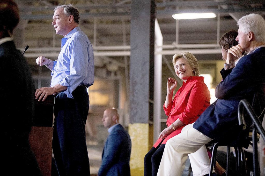 Clinton and running mate Sen. Tim Kaine, D-Va., drove through pockets of heavy rain Saturday on the second day of a bus tour of Pennsylvania and Ohio that is focused on Clinton’s plan to add jobs and encourage U.S. manufacturing. They are visiting advanced manufacturing facilities — bright spots in states that have seen an exodus of blue-collar jobs — as they take on Trump where he expects to be strongest.