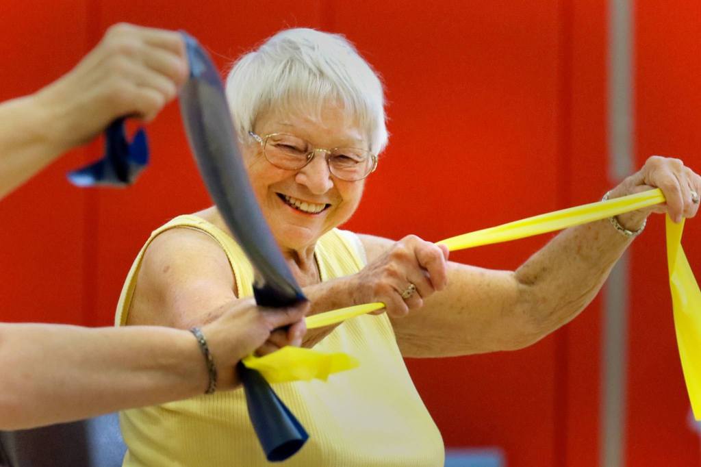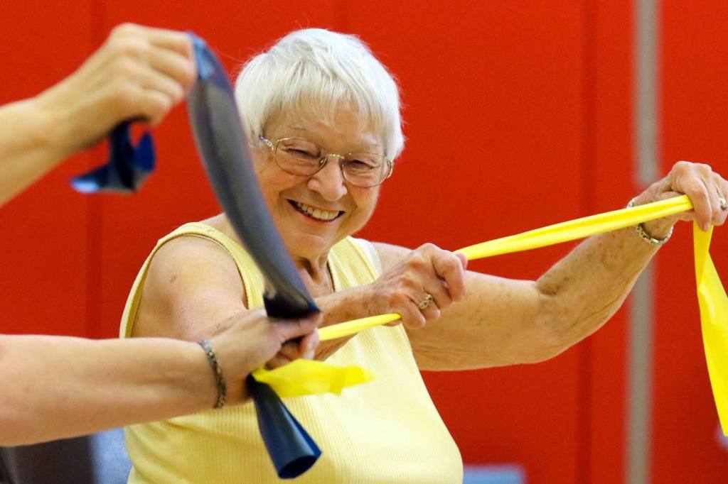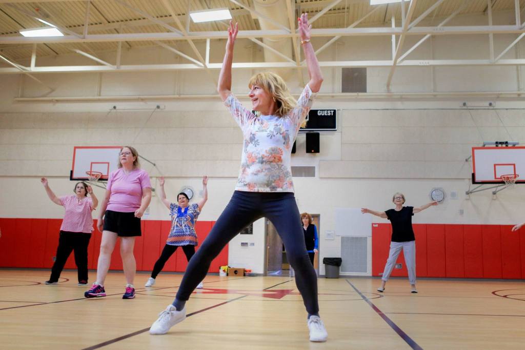 The women — all members of the Carl Gipson Senior Center of Everett — then settle into a friendly exercise session.