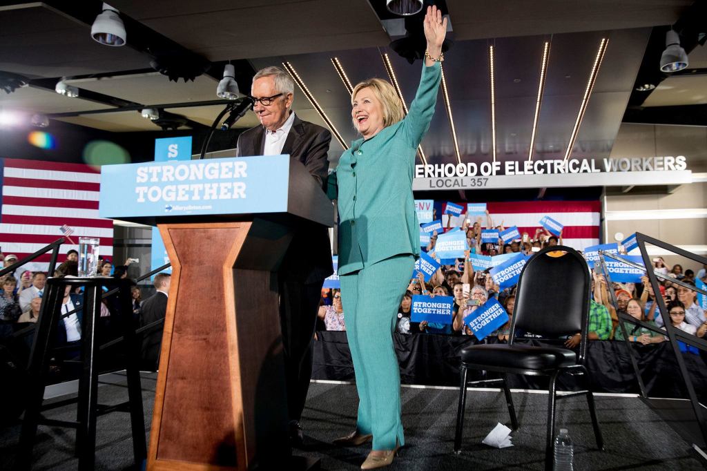 After appearing with Clinton at a rally in Las Vegas, Sen. Harry Reid, D-Nevada, warned Democrats not to be overconfident. But, citing recent polling, he said Clinton’s electoral map has the potential to extend to deeply red states.