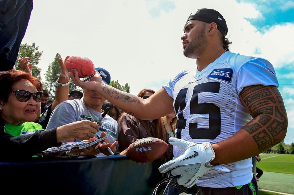 “I’m just happy and very grateful for the opportunity,” Tupou said following Thursday’s practice at the Virginia Mason Athletic Center. “These type of opportunities, they don’t come around too often. I just was very thankful that these guys here believed in me and wanted to keep me around. Right now it’s just up to me to live that opportunity and come out here and make sure I do everything right and take advantage of it.”