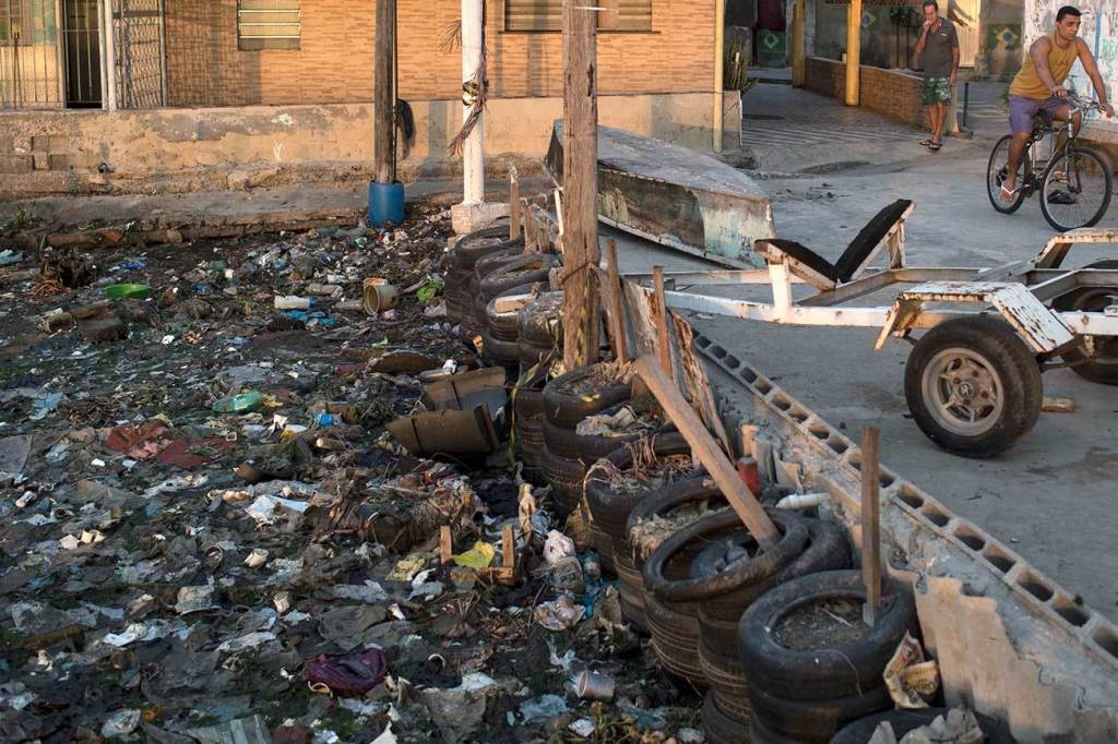 Houses stand next to the heavily polluted shore of Guanabara Bay in Rio de Janeiro, Brazil on Saturday, July 30. Just days ahead of the Olympic Games the waterways of Rio are as filthy as ever, contaminated with raw human sewage teeming with dangerous viruses and bacteria. (AP Photo/Felipe Dana)