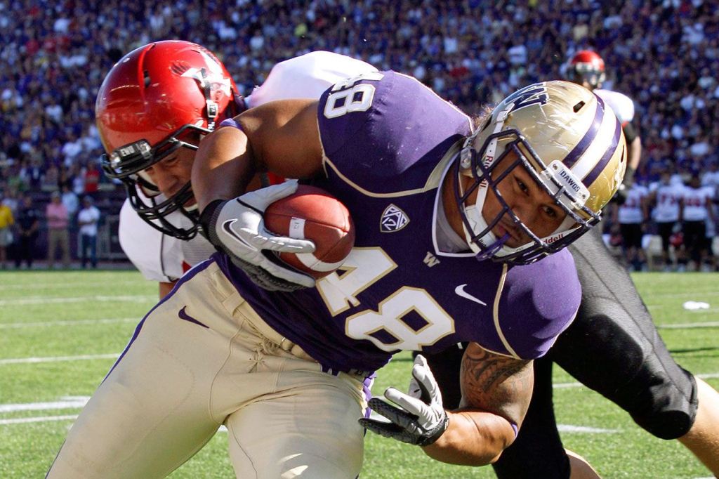 Amosa walked on at UW as a linebacker. Then-Huskies coach Steve Sarkisian switched him to fullback in the spring of 2011. He caught a few passes in 2011 and ’12, but the Huskies rarely used a fullback in its spread sets. Undrafted, Amosa signed with the Packers in May 2013. He caught a 1-yard touchdown pass from former Tennessee Titans starter Vince Young in a preseason game, but Green Bay released Amosa at the end of August.