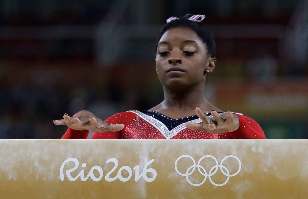 As she reached down to steady herself on the balance beam — her first visible misstep during an astonishing Olympics that includes three gold medals and some of the most boundary pushing gymnastics ever — one thought ran through her head.