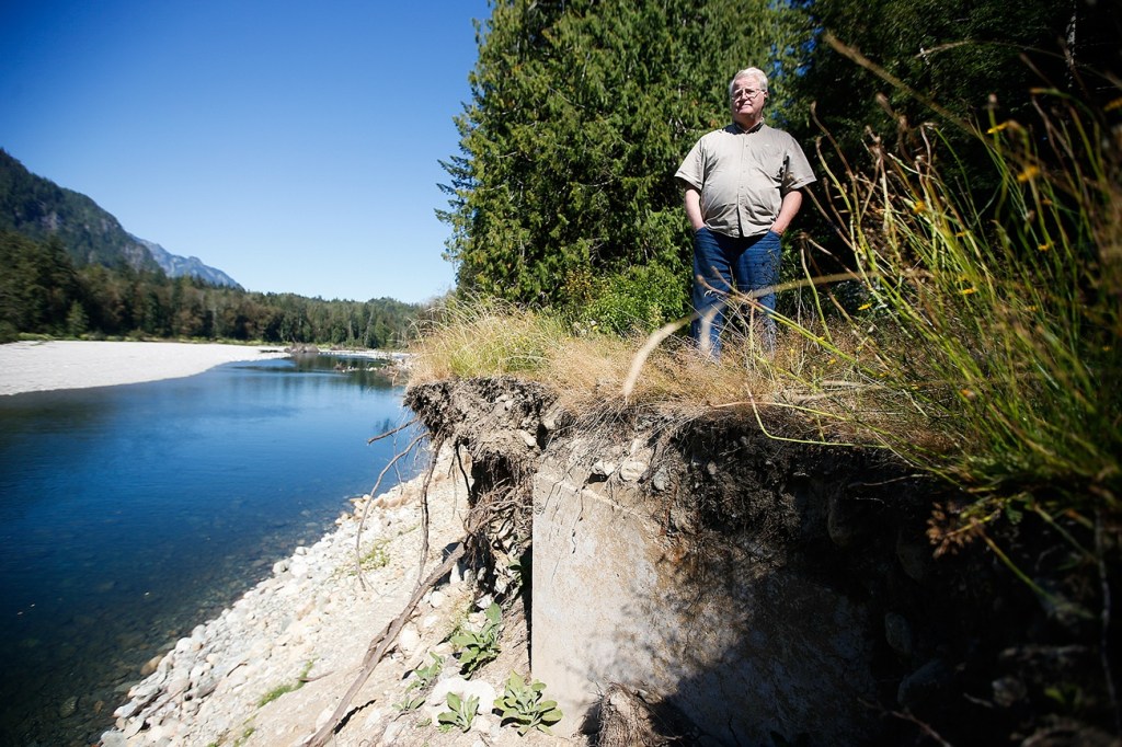 Poole worries that the house where he lives full time will wash into the Skykomish River this fall or winter, unless he can shore up a bank that’s slipping away. He wanted to start work this month on a project to fortify his property with stacks of boulders, but has been unable to get permits. He blames Snohomish County government for the holdup.