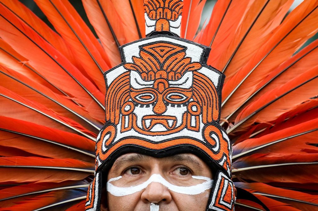 Jose Salinas, center, leads an Aztec Indian dance with Kiana Kypreos. left, and Kerry Wood holding Sophia Wood, right, following along Saturday afternoon during the annual Evergreen State Fair in Monroe. The 12-day fair runs through Labor Day and is one of the largest events held in the Pacific Northwest. (Kevin Clark / The Herald)