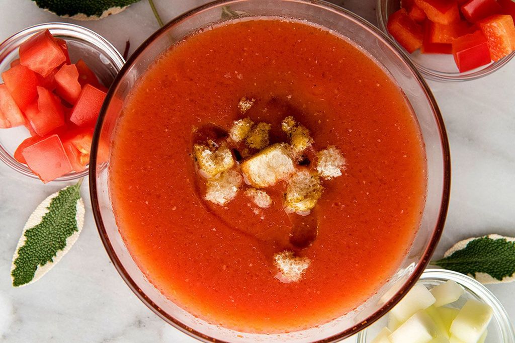 Gazpacho is a sophisticated dish that takes to a multitude of variations. But with all its versatility, it still requires a certain balance of components. In particular, too much sherry vinegar or garlic can ruin it.