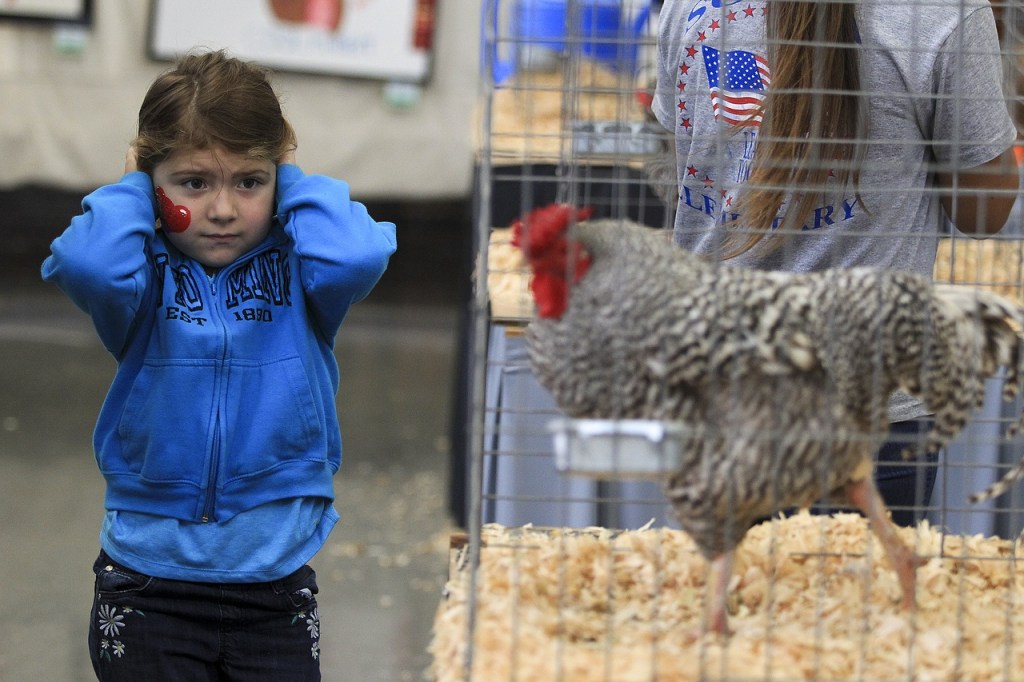 Eva Rike, 5, went to the fair with her grandfather, Matt Jones, of Snohomish. Eva said she couldn’t be sure what her favorite part of the fair was until she’d explored all of it. She quickly learned that the piglets were more her speed than the roosters. She flinched from cages and plugged her ears when the feisty fowl started crowing.