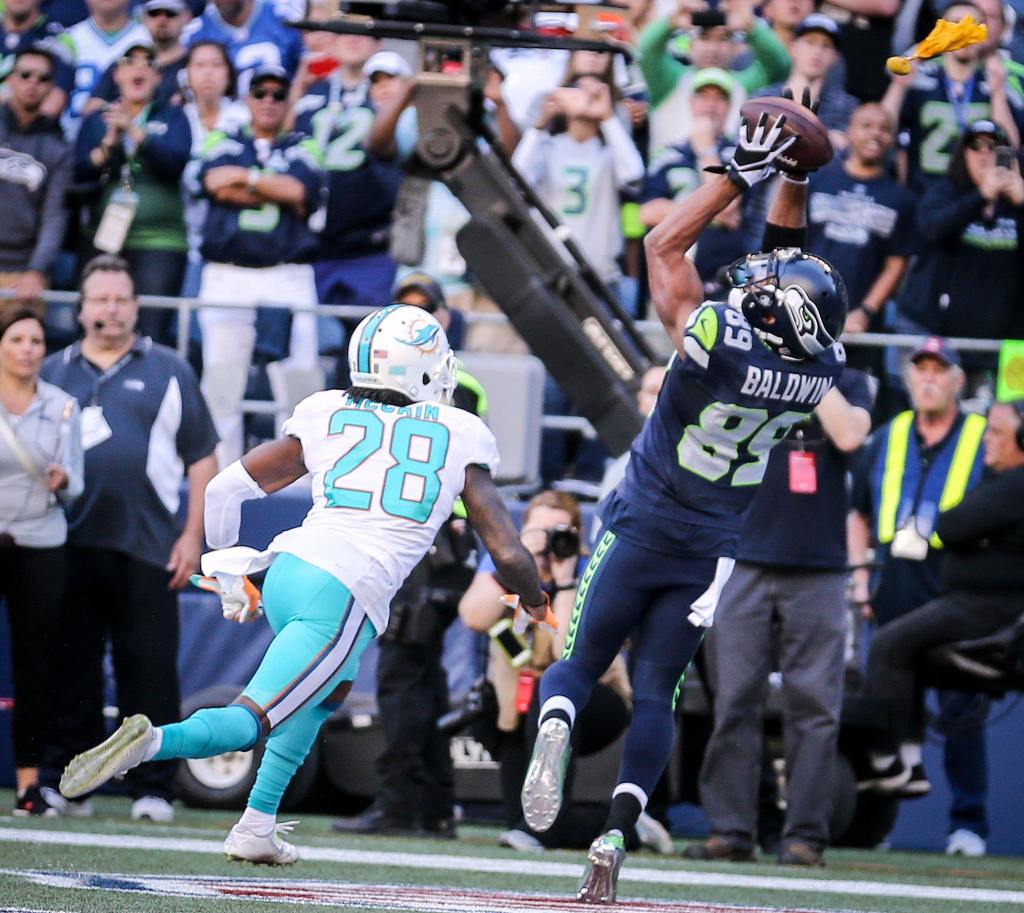 But for all Seattle’s first-game miscues, there were other heroic moments. The defense stopped Miami on fourth-and-1 at the Seahawks 17 in the first quarter, and defensive end Cassius Marsh thwarted another Dolphins scoring try by blocking a field goal early in the fourth quarter.