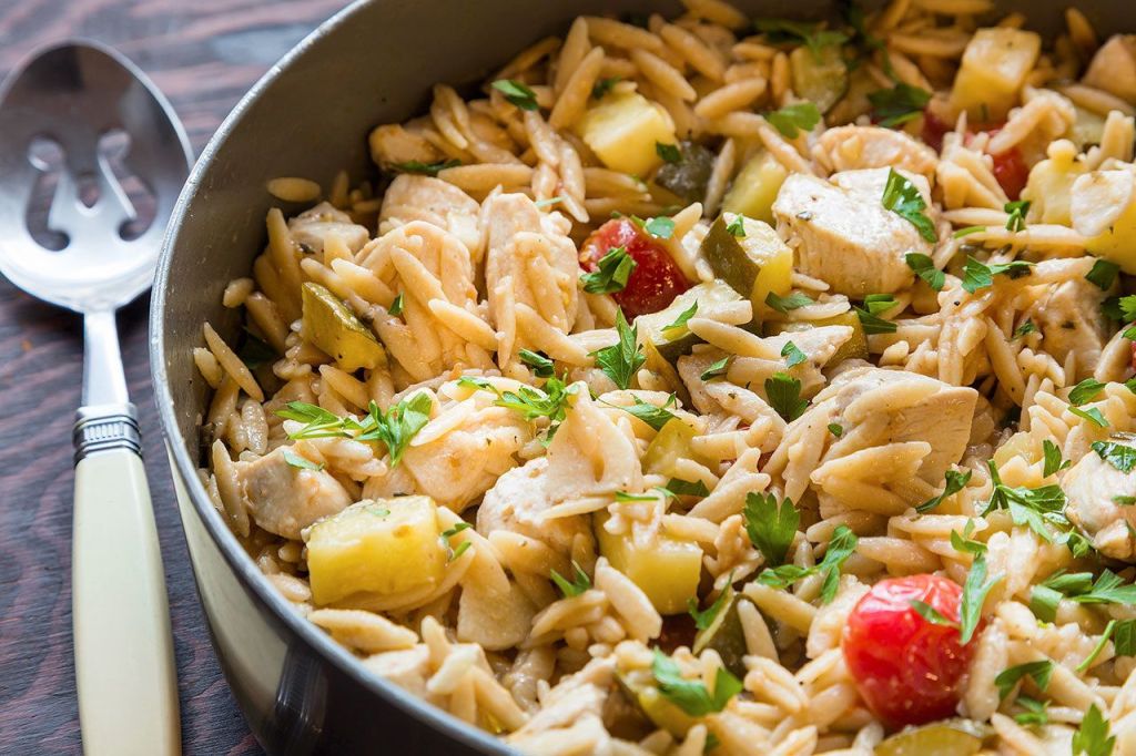 This one-skillet dinner brims with Mediterranean goodness. It’s a complete, nutritious meal with chunks of tender chicken, zucchini, cherry tomatoes and whole-grain orzo pasta, all simmered in a lemony garlic-and-rosemary-infused sauce. As a bonus, this recipe comes together in less than 30 minutes with minimal chopping, so it can take the stress out of the dinnertime crunch, something we could all use as we get back in gear post-Labor Day.