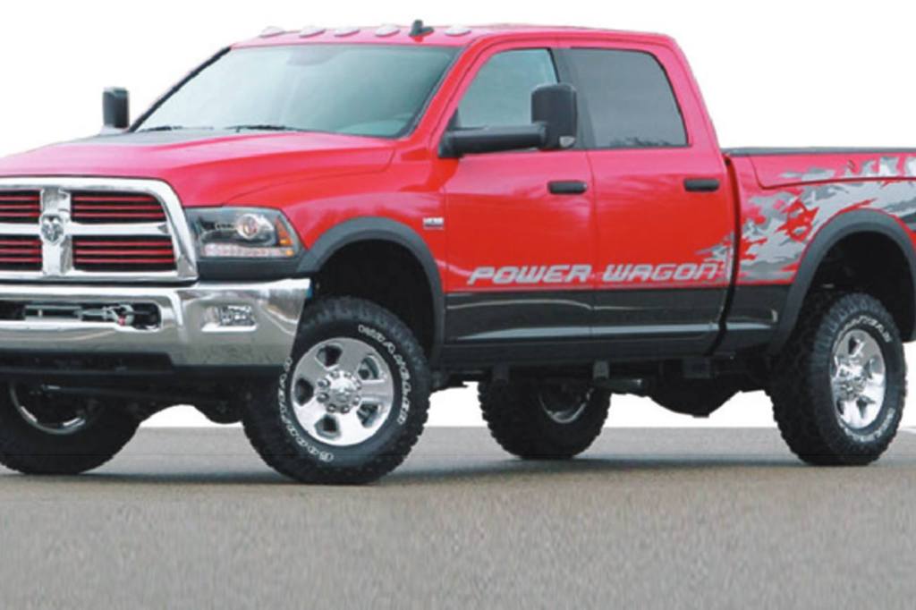 Based on the Ram 2500 Heavy Duty 4×4 Crew Cab, the Power Wagon features a number of off-roadspecific enhancements, including a unique suspension with more than two inches of lift, locking differentials and a 12,000-lb. winch, giving this beast a significant advantage over all production pickups. My wife needed a boost from our son to enter the manly domain.