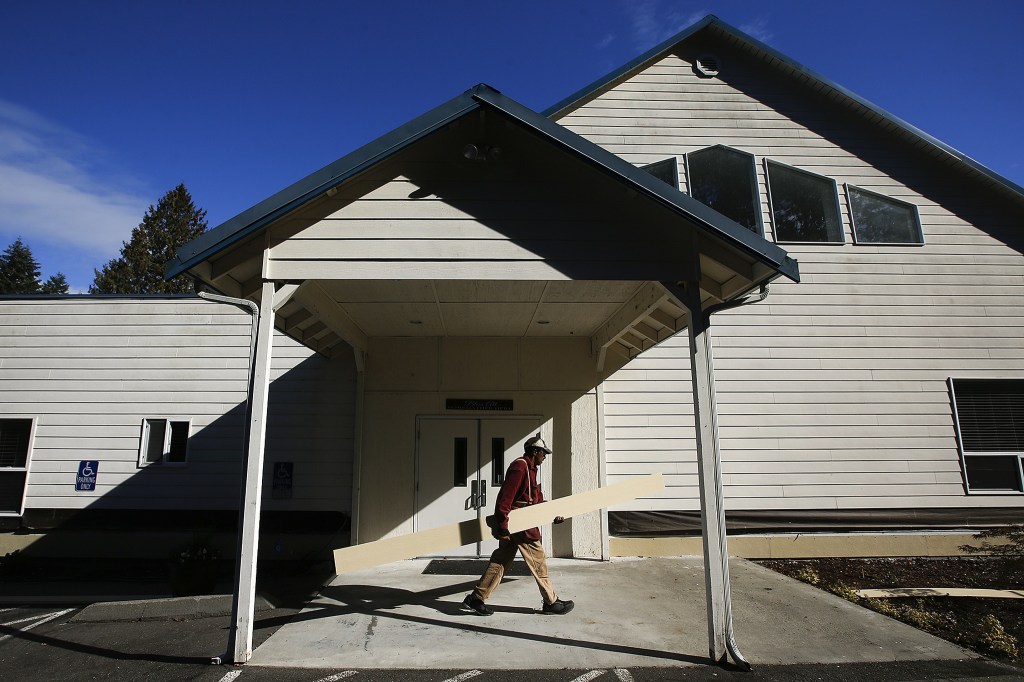 Al Taniguchi, a member of the The Seven Lakes Baptist Church, is helping to restore the siding of his church with help from the Lakewood ward of the Church of Jesus Christ of Latter-day Saints. “It’s a real blessing for us,” Taniguchi said. (Ian Terry / The Herald)