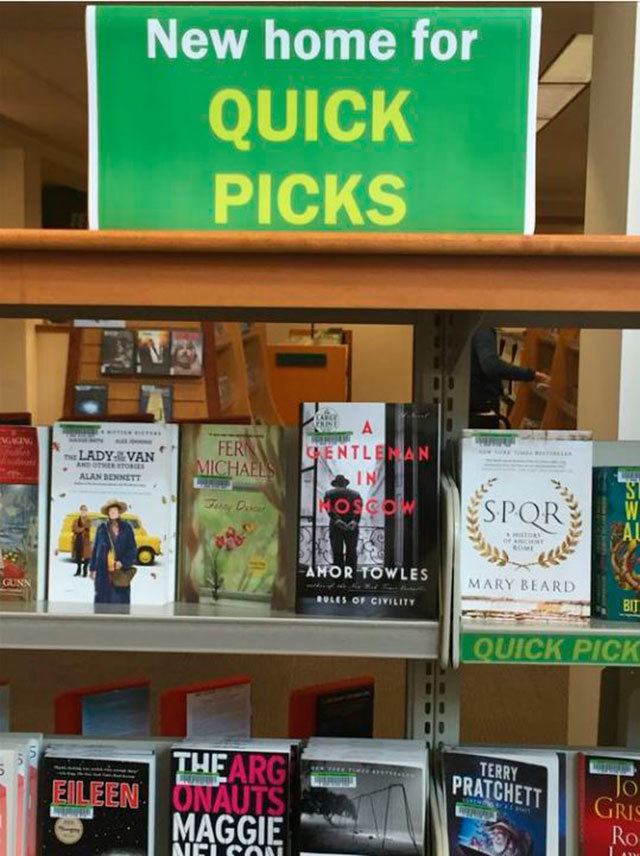 So remember to check out our Quick Picks collections at both locations. Browse a selection of mystery, romance, and notable bestsellers. Don’t waste your money on books when you can borrow them from your library. Quick! Pick a book!