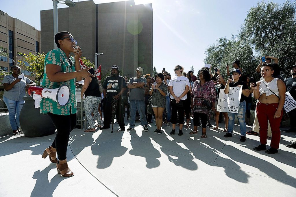 EL CAJON, Calif. — Dozens of demonstrators on Wednesday protested the killing of a black man shot by an officer after authorities said the man pulled an object from a pocket, pointed it and assumed a “shooting stance.”