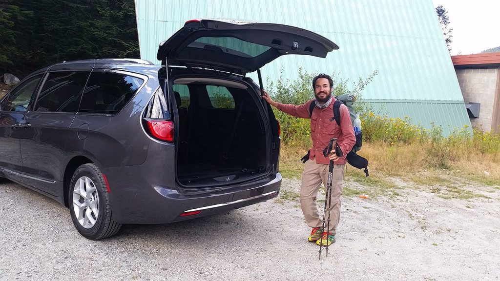 Pacifica is an all-new minivan from Chrysler, replacing the long-lived but now discontinued Town & Country minivan. Just like their names, the two are completely different. Pacifica takes the Chrysler minivan to a whole new level of sophistication with a platform engineered to optimize ride comfort, handling responsiveness and serenity within the passenger cabin. While these qualities are wonderful and were appreciated by me during the test week, they’re not necessities for hauling PCT hikers and their gear to and from Stevens Pass. For that, Pacifica provides 197.3 cubic feet of interior volume with three rows of seats, outfitted with an amazing Transformer-like Stow ’n Go seating and storage system that lets you flip and fold every which way to customize the setup for whatever ratio of passengers-to-cargo space you need. Especially cool: The seats don’t just fold flat, they fold down into the floor, completely disappearing. For easy opening, power sliding side doors have a small “chiclet” button on the exterior handles in addition to keyfob operation. Hands-free operation by moving your foot beneath the doors, and a built-in vacuum system for tidying the cabin are two more handy features, standard or optional depending on the different models in the Pacific lineup.