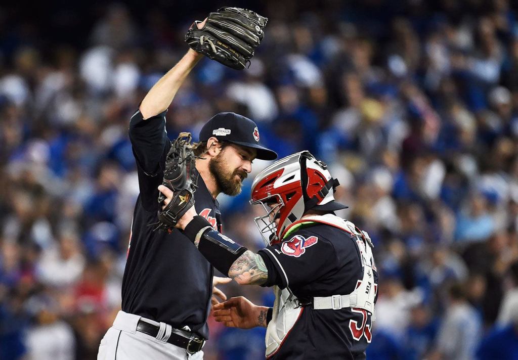 TORONTO — Andrew Miller and the Cleveland bullpen pulled off their most impressive feat yet in these American League playoffs, taking over after Trevor Bauer’s bloody exit and holding off the Toronto Blue Jays in a 4-2 victory Monday night that moved the Indians within one win of their first pennant since 1997.