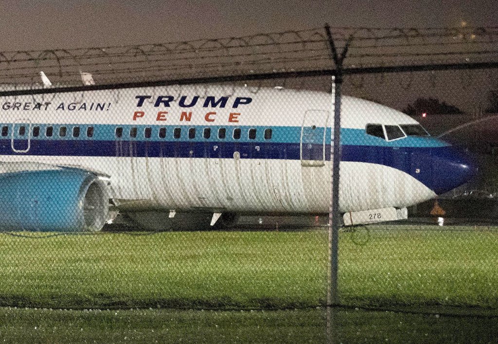 The Boeing 737 carrying Pence, 36 other passengers and 11 crew members made a hard landing in a rainstorm. The pilot slammed on the brakes, and the plane, marked with running mate Donald Trump’s “Make America Great Again” slogan, began to slide sideways. When it stopped in the middle of the arrestor bed, passengers could smell burning rubber.