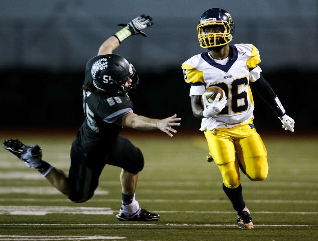 Mariner (5-2 league, 6-3 overall) got huge performances from quarterback JJ Walker and receiver Anthony Allen. Walker completed 13-of-22 passes for 185 yards and four touchdowns, including the game-winner — a 27-yard strike to Anthany Smith with 1:43 to play. Allen caught seven passes for 118 yards and caught TDs of 9 and 33 yards.