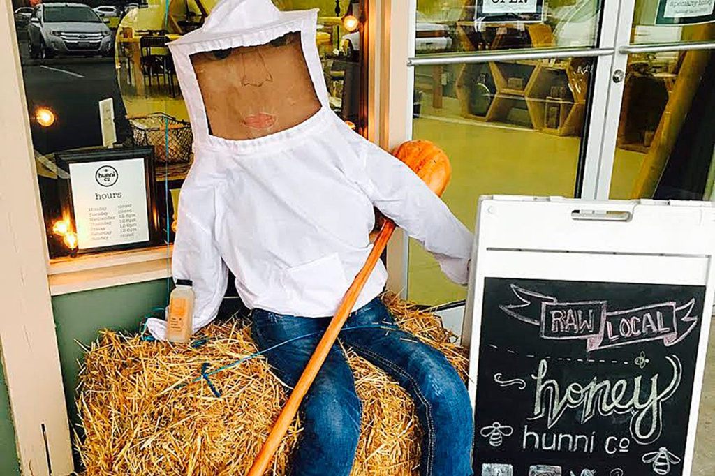 Homeowners, businesses and local organizations make scarecrows in October and register them for the festival’s contest. People can vote online for their favorites. There are six categories based on who made the scarecrows and where they are displayed: residential; food and beverage; retail; services; financial, insurance or real estate; and government, school or art and civic organizations.