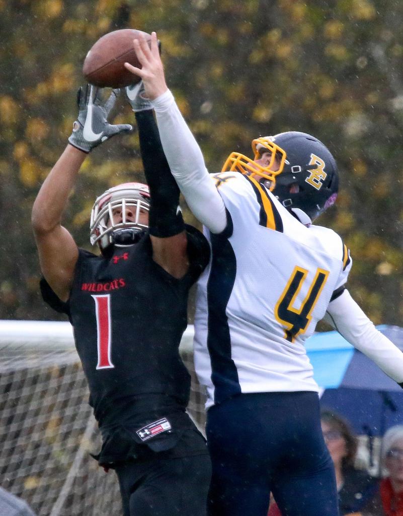 Archbishop Murphy’s Kyler Gordon breaks up a pass intended for Burlington-Edison’s Axel Wilhoneon Saturday afternoon at Terry Ennis Stadium on November 5, 2016. (Kevin Clark / The Herald)