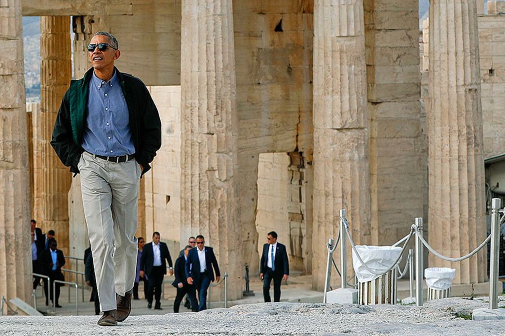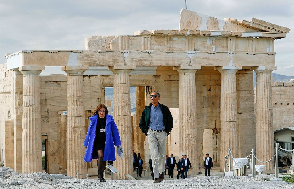 The 5th century B.C. temple is surrounded these days by scaffolding as part of a maintenance project. The entire site was closed to the public for the day for Obama’s visit, which has taken place amid stringent security measures. Demonstrations were banned in parts of Athens, and road and subway stations were shut down for the first official visit of a sitting U.S. president since Bill Clinton came in 1999.