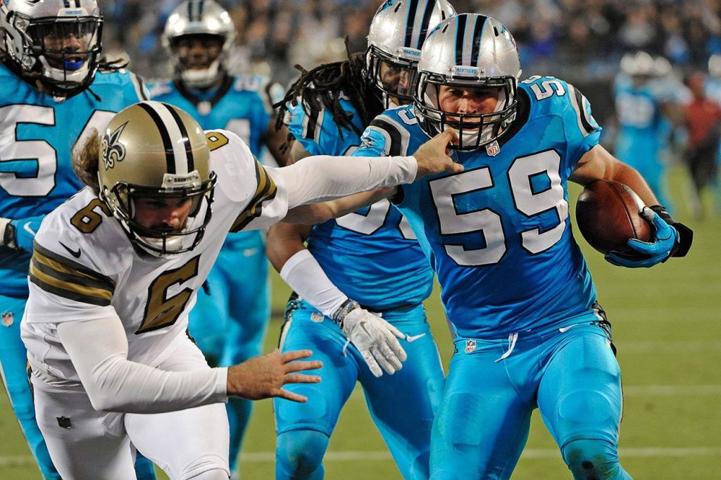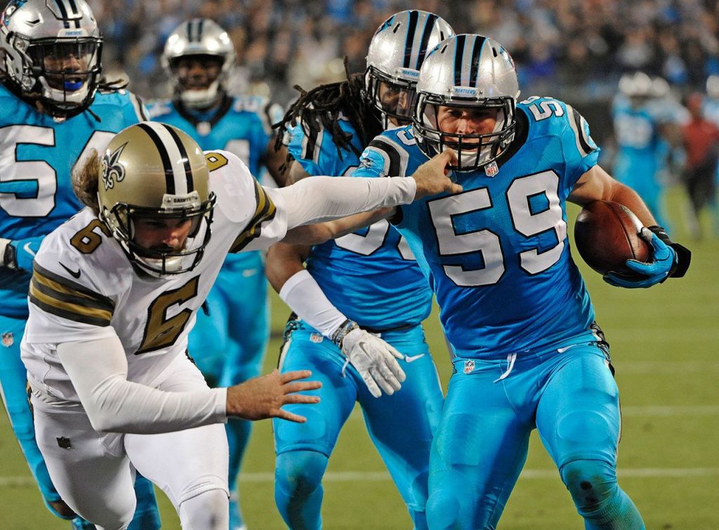 The Panthers lost former NFL Defensive Player of the Year Luke Kuechly (concussion), two-time All-Pro center Ryan Kalil (shoulder), defensive end Mario Addison (foot) and cornerback Leonard Johnson (chest) to injuries. Kuechly left the field on a cart while tears streamed down his face.