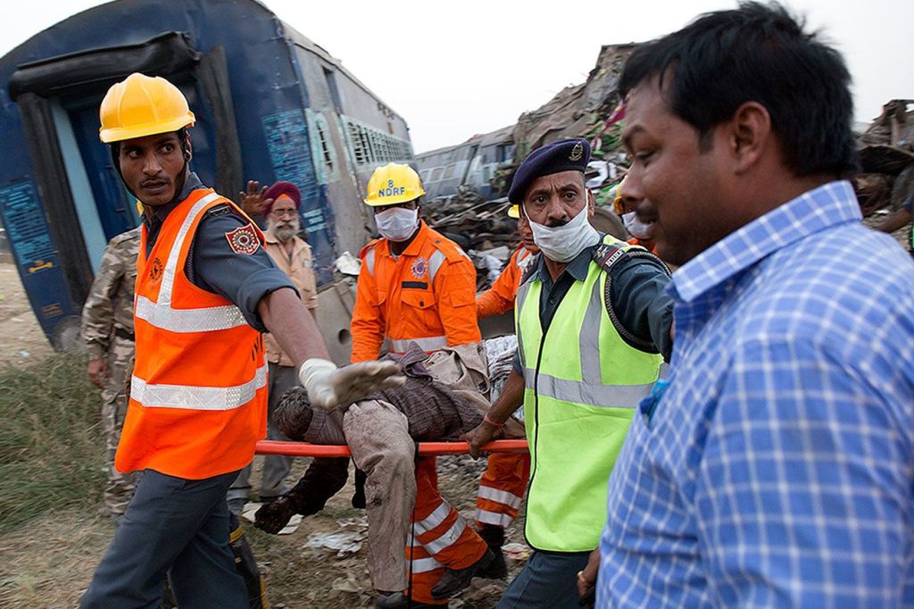 Rescue workers, soldiers and members of India’s disaster management force reached Pukhrayan within an hour of the derailment and began pulling out people trapped in the overturned coaches.