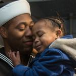 Nicole Udall was waiting with her two children, Brooklynn, 4, and Eli, 2, for her husband, Petty Officer 2nd Class John Udall.