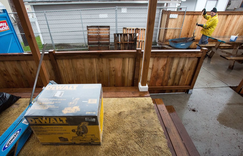 Anderson fielded calls from several people wanting to donate tools. On Sunday, he was at the construction site when a retired contractor stopped by, opened up the back of his SUV and pulled out a power miter box saw and other tools.