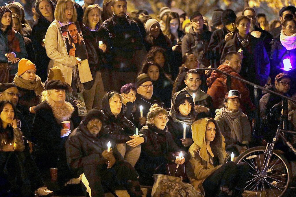 On Monday night, hundreds of people holding candles and flowers honored those who died in the fire at a vigil at Oakland’s Lake Merritt.