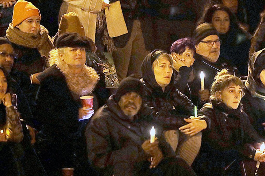Those in the crowd embraced each other or held up candles as they said aloud the names of people they lost in the blaze.