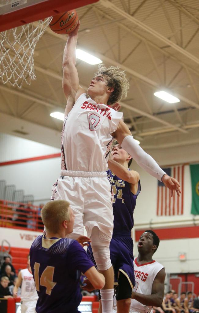 But Stanwood’s impressive second half had as much to do with defense as offense. In particular, the Spartans got serious about defending Lake Stevens guard Ryder Kavanagh, who was coming off a 38-point performance in Friday’s 80-66 victory over Arlington.