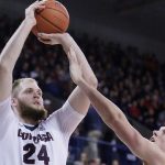 Gonzaga forward Zach Collins led the Zags with 21 points in Tuesday night’s win over South Dakota. (AP Photo/Young Kwak)