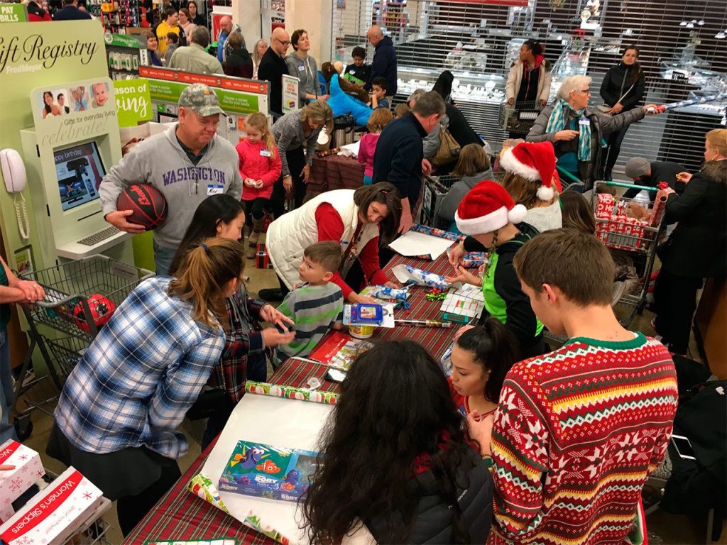 Rotary members raised over $4,000 for the effort, with help from the South Everett Fred Meyer and from Cascade High School students, who wrapped the gifts. Santa also paid a visit.