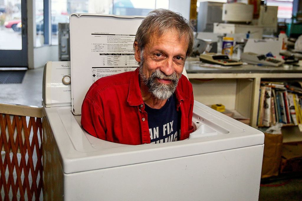 “What’s Up with That?” columnist Andrea Brown investigated what was behind the row of wringer washers in the window of a Broadway appliance store and met real men getting beauty makeovers at a Bothell salon for dudes.