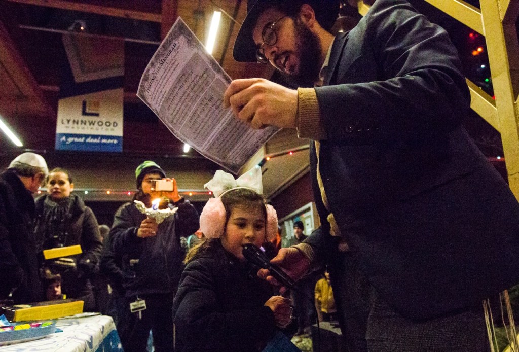 The Chabad Jewish Center of Snohomish County hosted its fifth annual menorah lighting. About 100 people gathered in front of Lynnwood City Hall for the event.