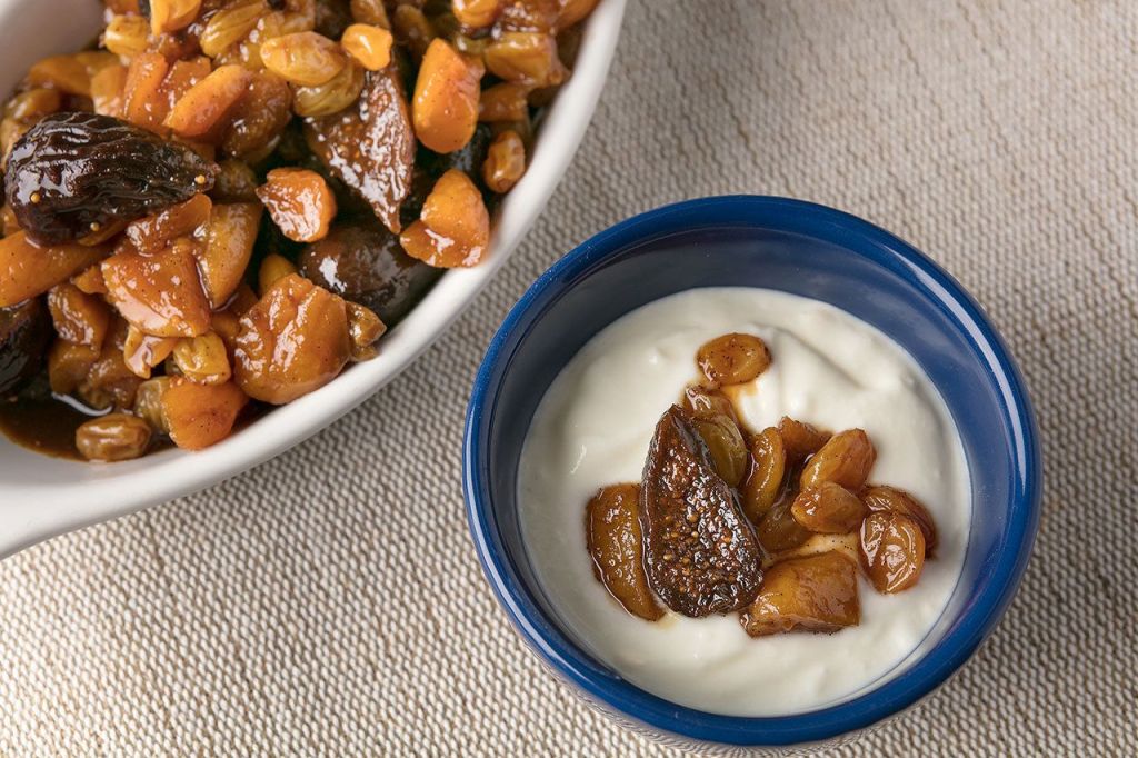 The recipe calls for figs, apricots and golden raisins; I especially enjoy the texture of the figs, with the gentle crunch of their seeds. But you could substitute any dried fruit that tips toward the sweet rather than tart side. Prunes would work well, as would chopped dried pears, for example.